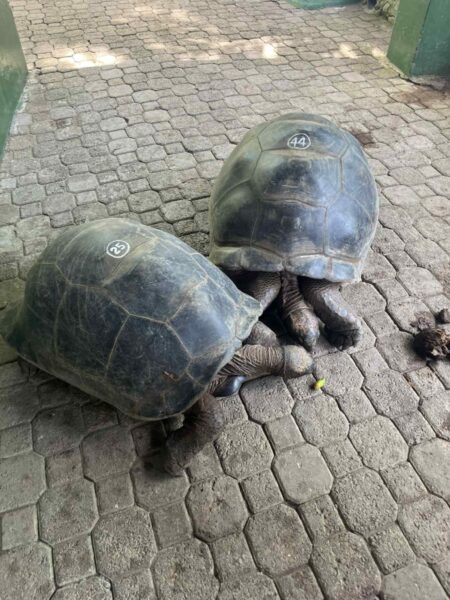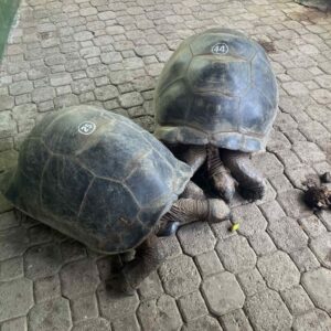 Szabadon élő óriásteknősök Moyenne-szigeten