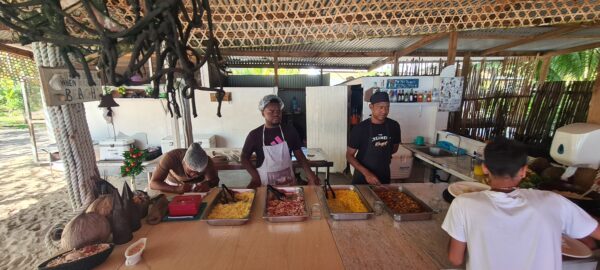 A Cerf-szigetre való érkezést követően kerül sor a BBQ ebédre, amely jellemzően grillezett halból, csirkéből, fokhagymás kenyérből, rizsből és friss salátából áll.
